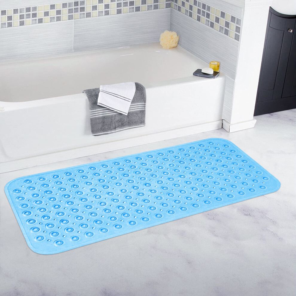 Non-Slip Bathroom Shower Mat 38x100cm Blue TPR Safety Bath Mat