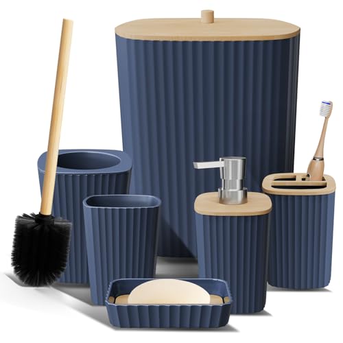 Clara Clark Bathroom Set - Navy Blue Bathroom Accessories Set, 6PC Bathroom Accessory Set, Bathroom Sets with Toilet Brush, Trash Can & Soap Dispenser