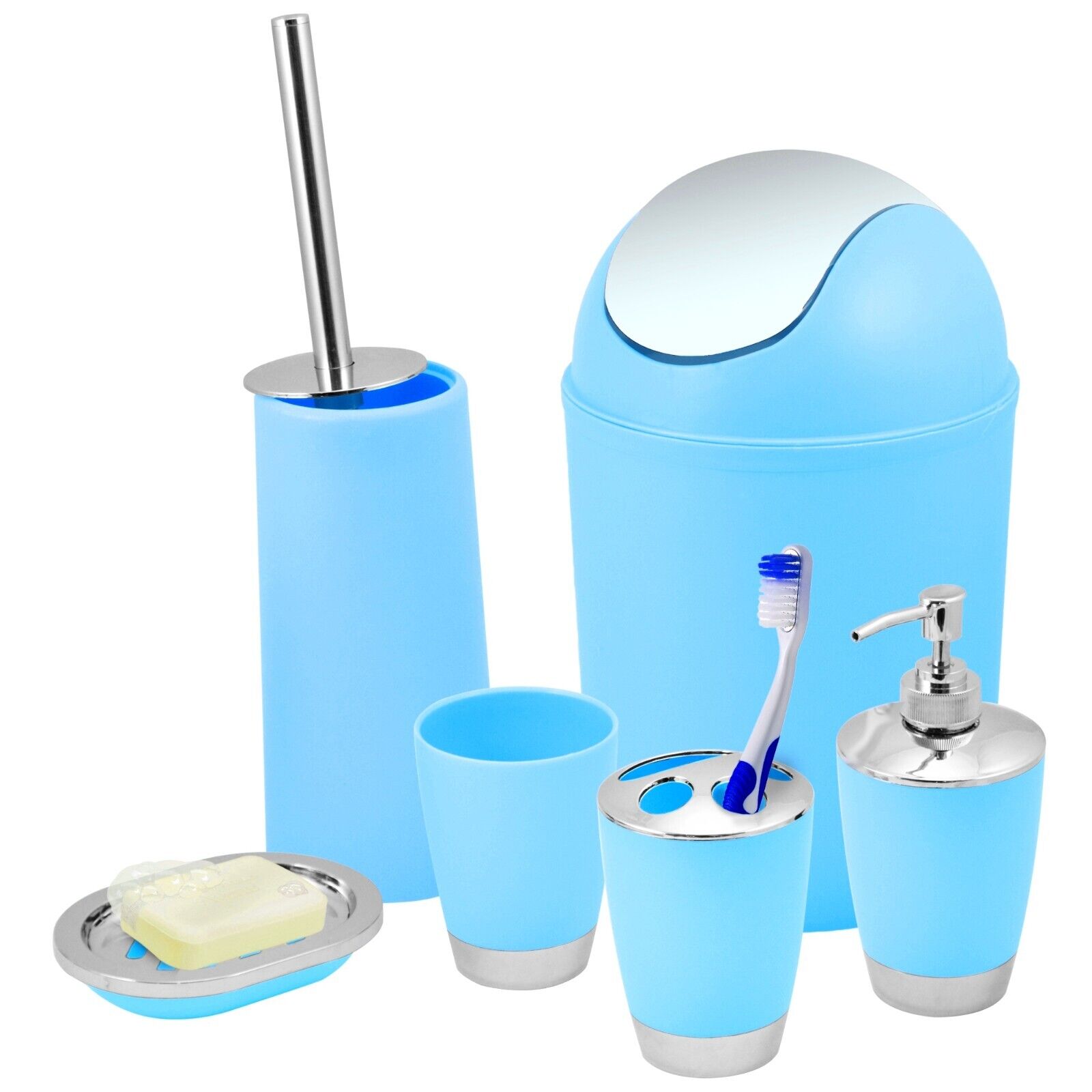 Blue Bathroom Accessories Set Bin Toothbrush Tumbler Holder Soap Dish Dispenser