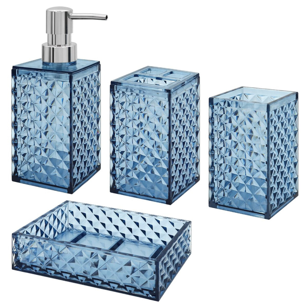 Bathroom Accessories Set of Acrylic Plastic soap Dispenser, Toothbrush Holder, Toothbrush Cup, soap Dish, Blue Bathroom Accessories 4pcs Set (Blue)
