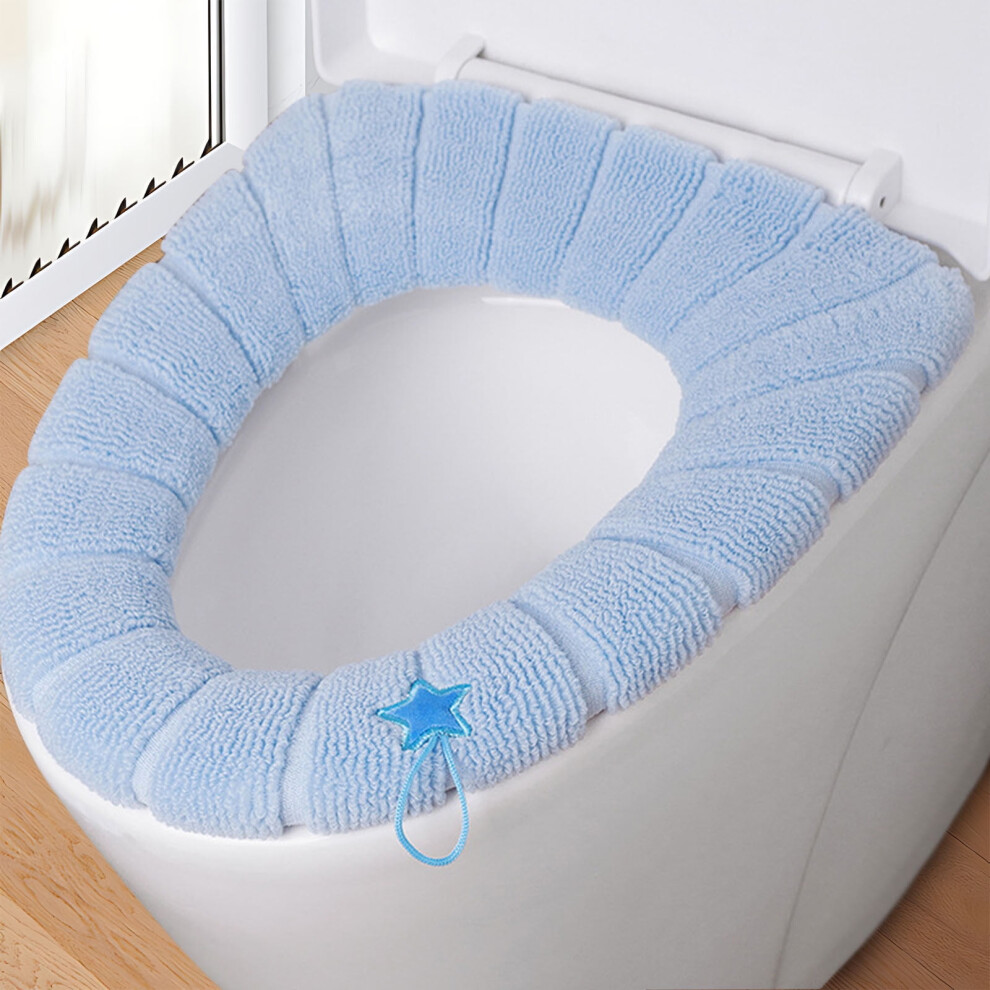 Toilet Seat Cover Thickened Seat Cushion with Handle, Blue Bathroom Accessories