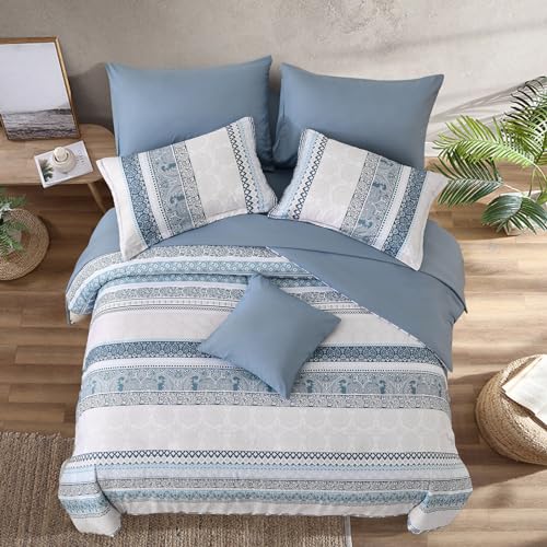WONGS BEDDING King Size Bohemian Duvet Cover Light Blue Colorful Boho Bedding Set with 2 Pillowcases Soft Microfiber Moroccan Quilt Cover 220x230cm