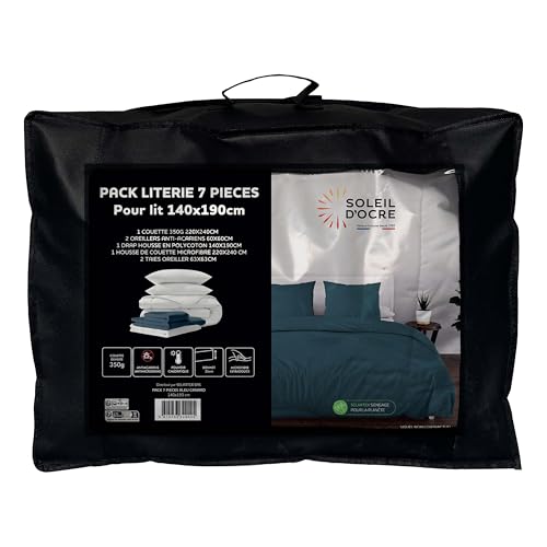 Soleil d'ocre, Boheme 7-Piece Duck Egg Blue Duvet and Bedding Set for Bed 140 x 190 cm