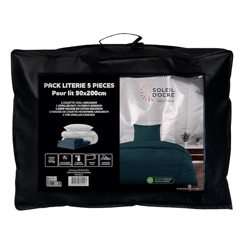 Soleil d'ocre, Boheme 5-Piece Duck Egg Blue Duvet and Bedding Set for Bed 90 x 200 cm