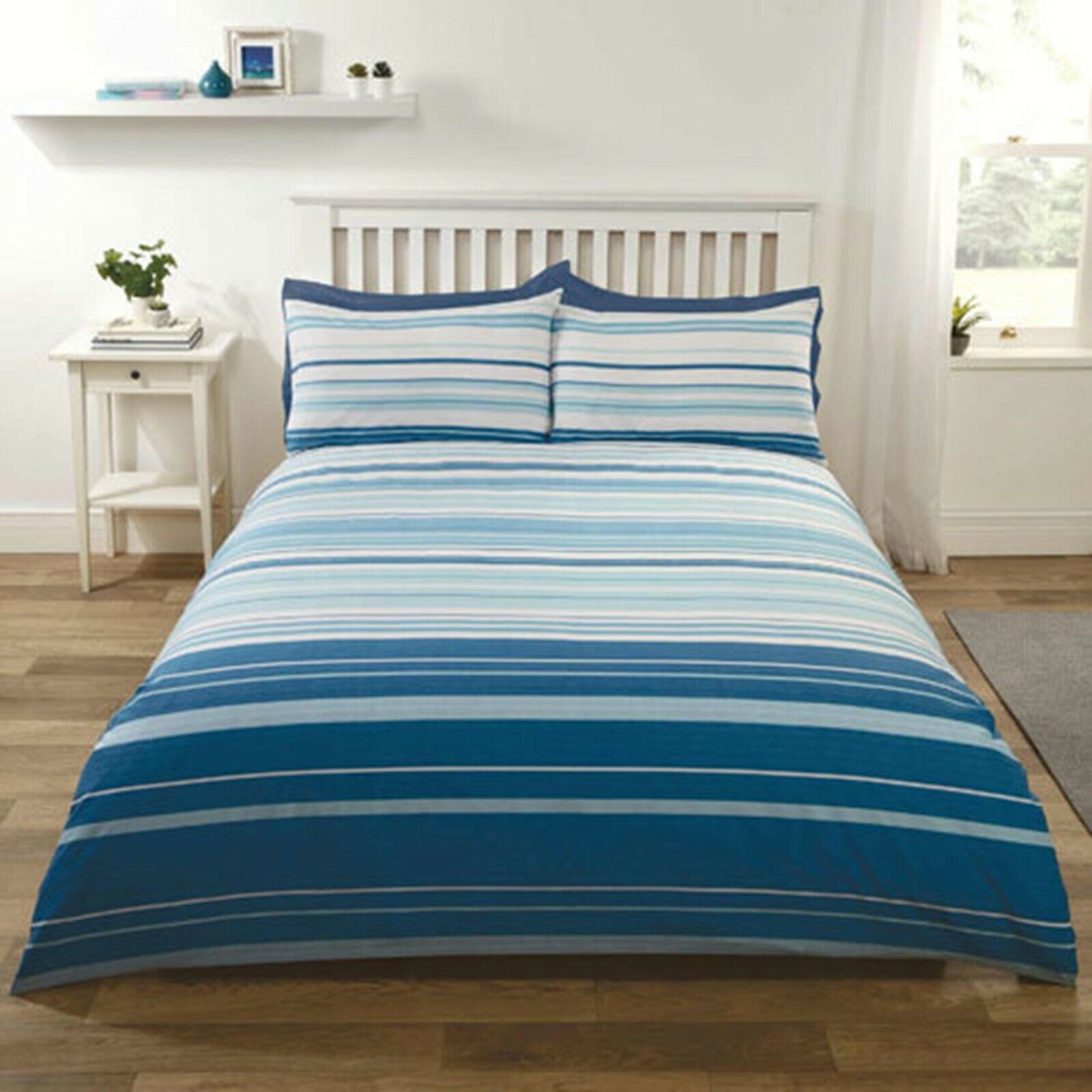 Rapport Home Art Soho Duvet Cover Set Blue Striped Bedding Set, Single, 12400908,135 x200 cm