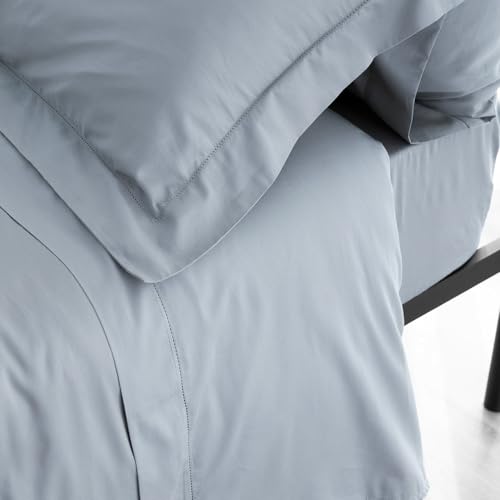 Le linge de Jules Ginko Blue Bedding Set Flat Sheet + Fitted Sheet 140 x 190 + 2 T - Pure Cotton 57 Thread Count