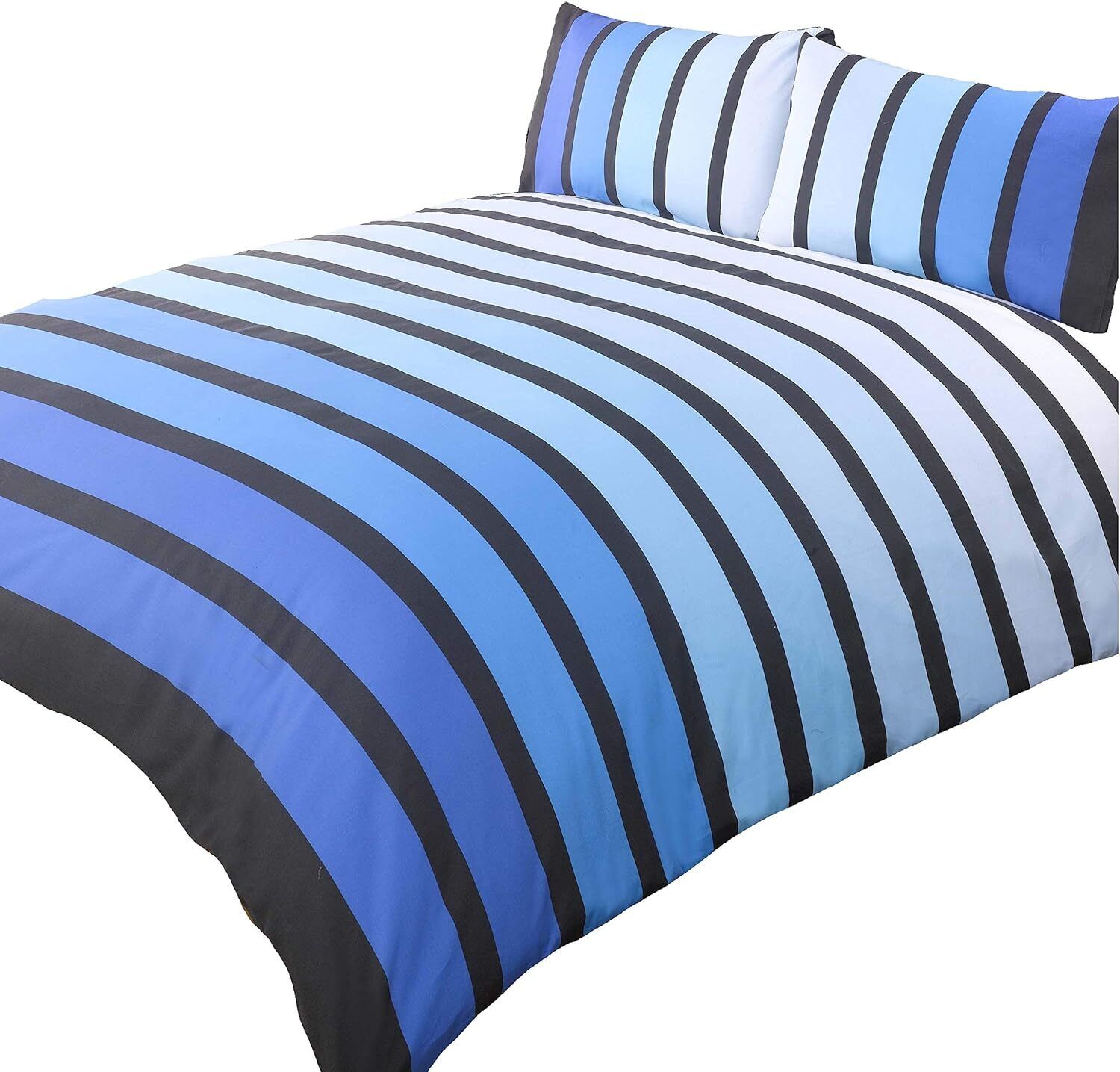 Lekesky Double Duvet Cover Set 4 Piece Soft Microfibre Stripe Print Blue Double Bedding Set with 1x Duvet Cover 200x200 cm 2x Envelope Pillowcases 1x extra 40cm Deep Fitted Bed Sheet