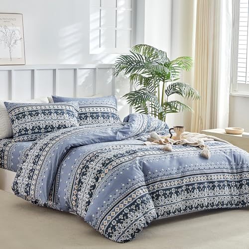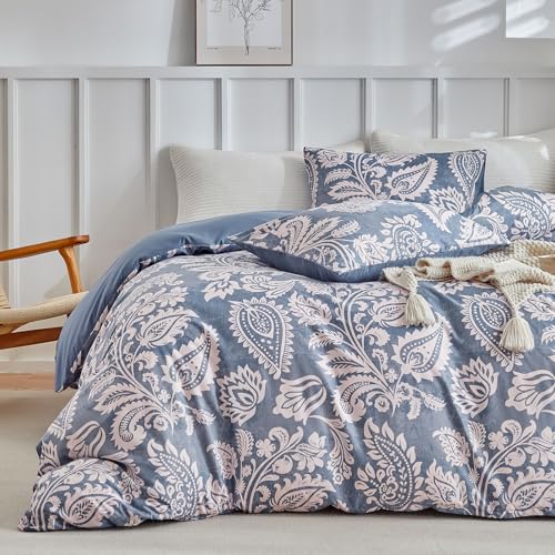 Lekesky Double Duvet Cover Set Blue Bedding, Traditional Paisley Pattern Double Duvet Set (1x Quilt Cover, 2x Pillowcases) Soft Microfibre Blue Bedding Set 200x200 cm