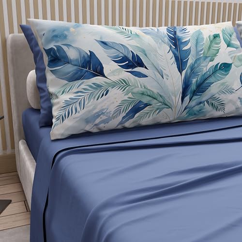 PETTI Artigiani Italiani - Cotton Sheets with Pillowcases in Digital Print, Single Sheet, Blue Palm Print Bedding Set, 100% Made in Italy
