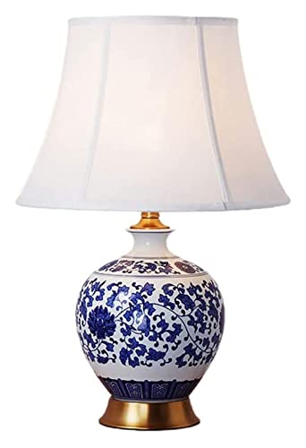 Ceramic Asian Oriental Ceramics Blue and White Glazed Bedside Table Bedroom Decor Nightstand Desk Light for Living Room Study Home Office Reading Lamps lamp