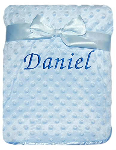 Baby Boy Girl Personalised Blanket Embroidered Name Bobble Pink Blue White Grey (Blue Bobble Blanket)