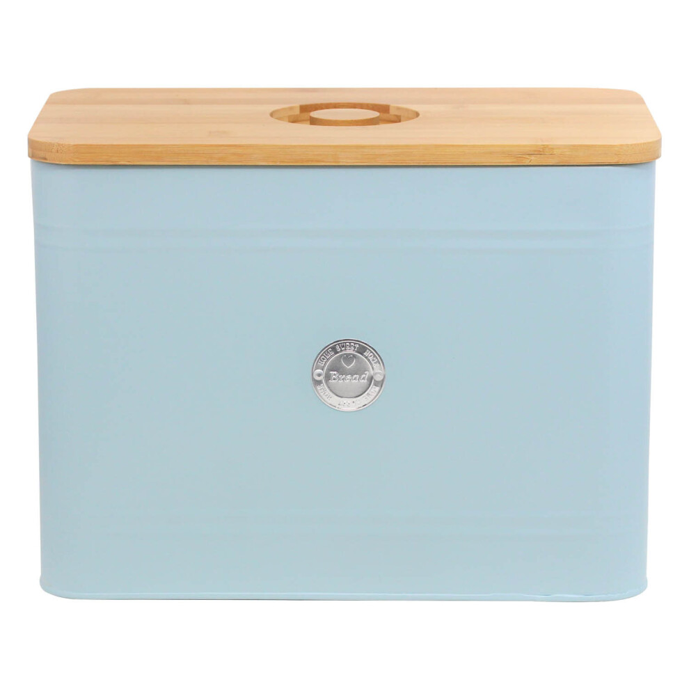 CALITEK Metal Bread Bin Kitchen Counter Bamboo Chopping Board Lid Blue