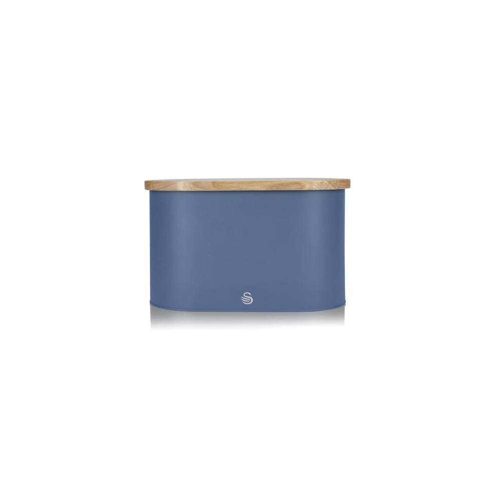 Swan Nordic Blue Bread Bin with Bamboo Cutting Board Lid SWKA17512BLUN
