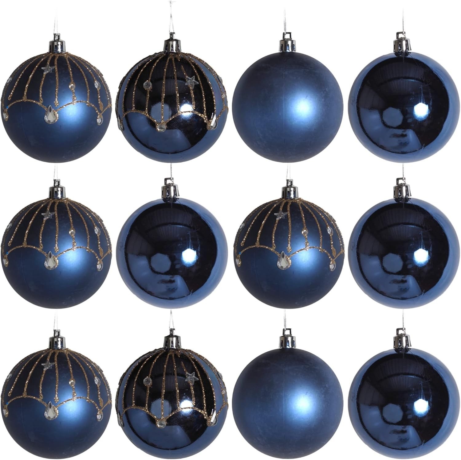 12 x 6cm Midnight Blue Christmas Baubles â Gloss & Matte Finishes, Shatterproof with Silver Thread, 12 Pack