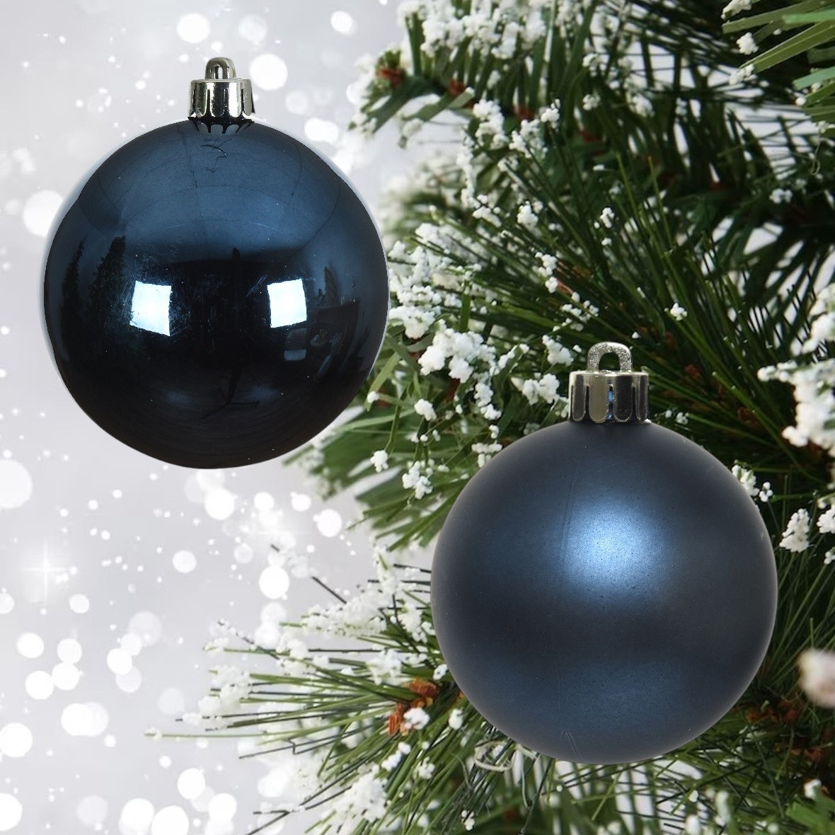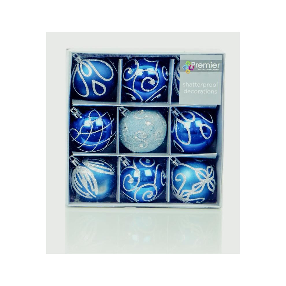 60mm Midnight Blue Christmas Baubles | 9 Assorted | Shatterproof Tree Decorations