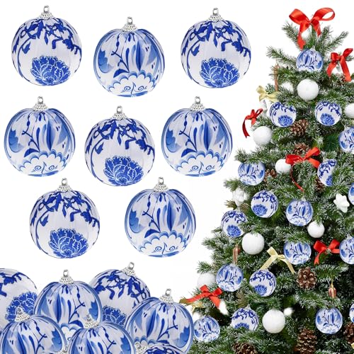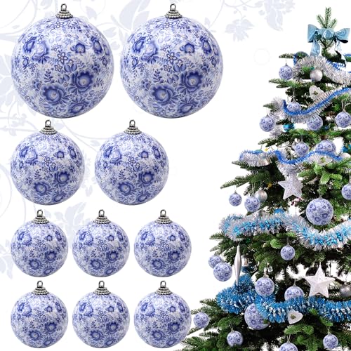 Yatinkim 10 Pcs Blue and White Christmas Baubles Chinoiserie Blue Christmas Decorations Baubles Assorted Bauble Handmade Fabric Hanging Balls for Xams Tree decoration Wreath Home Party