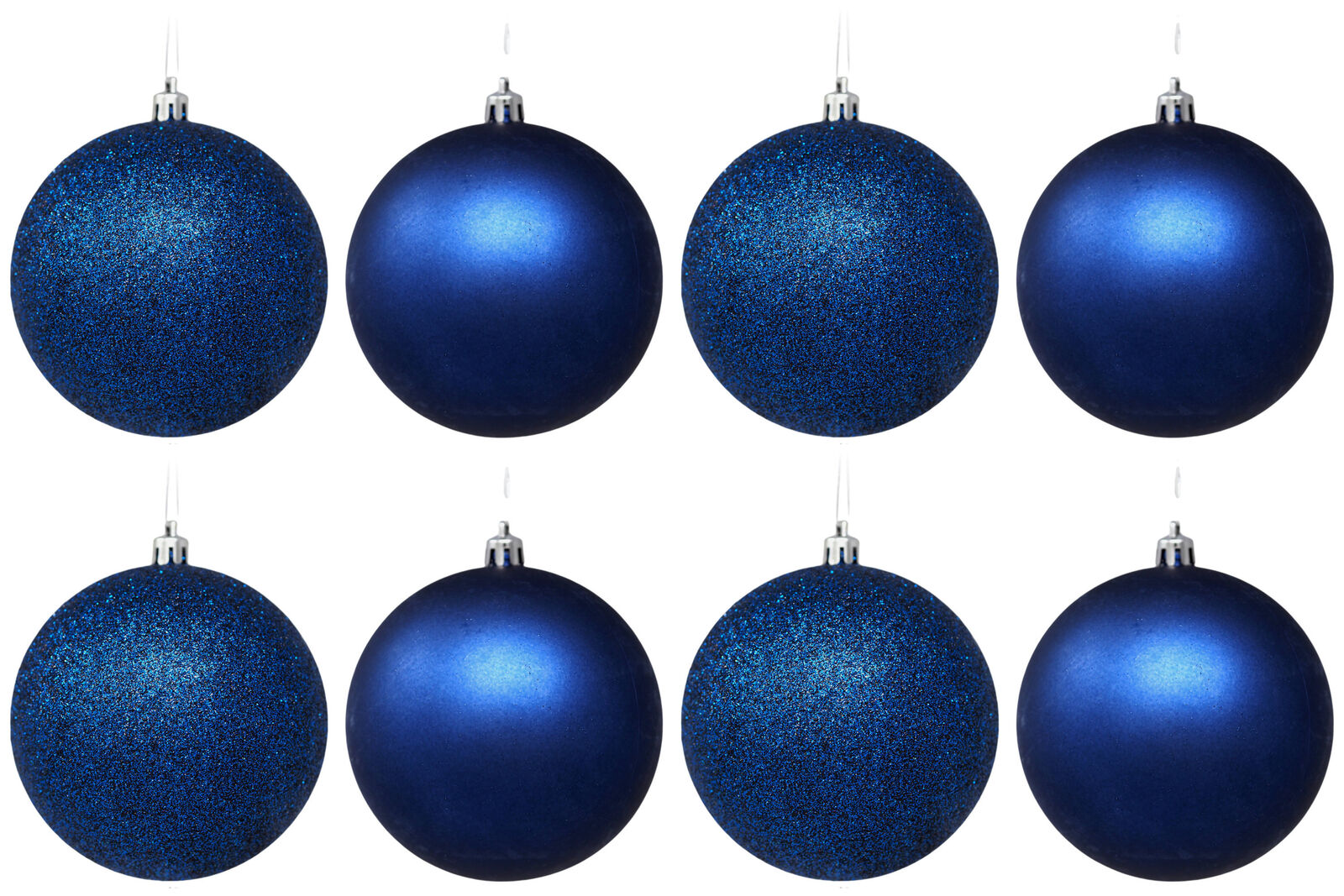 Navy Blue Christmas Baubles 10cm Tree Ornaments - Glitter Matt - Set of 8