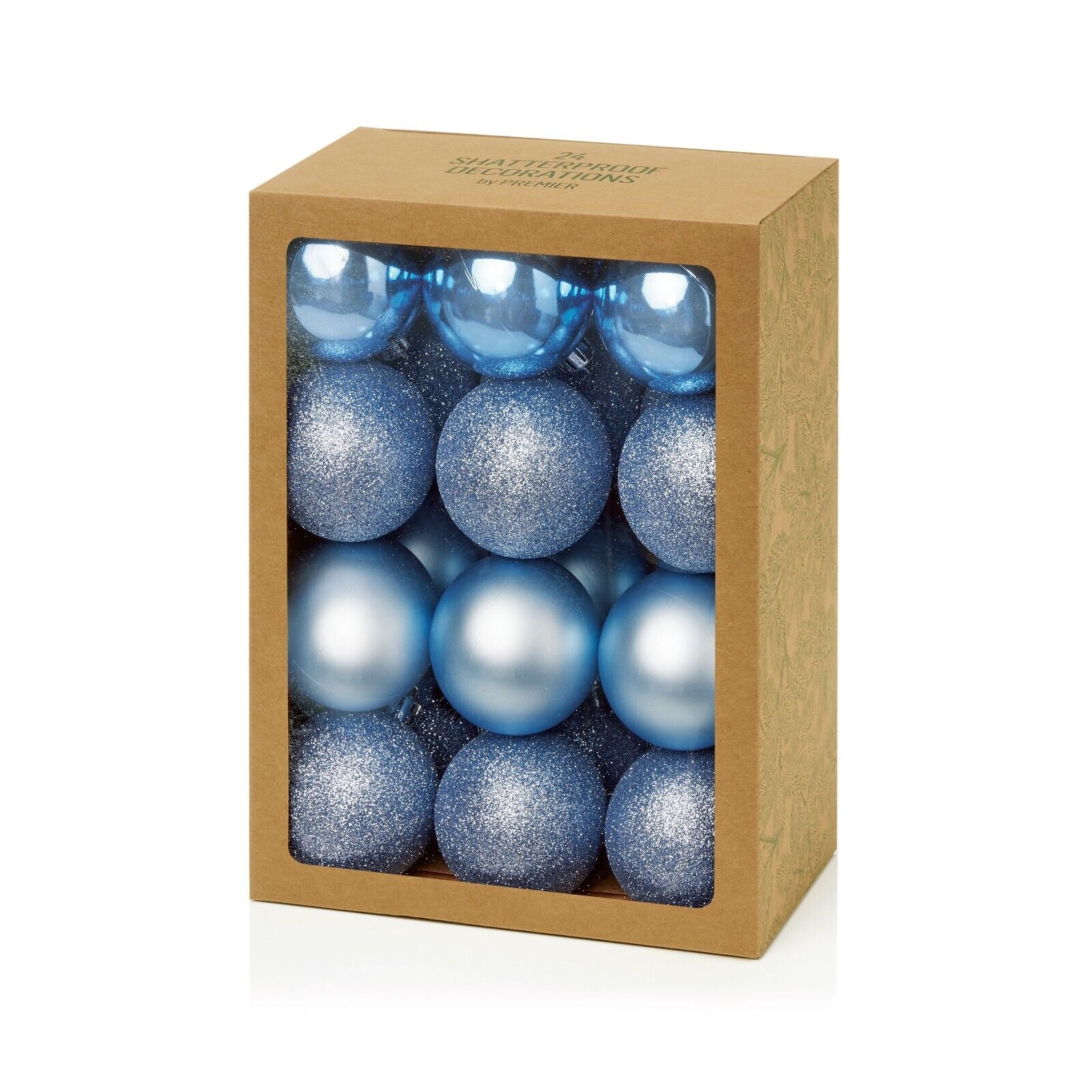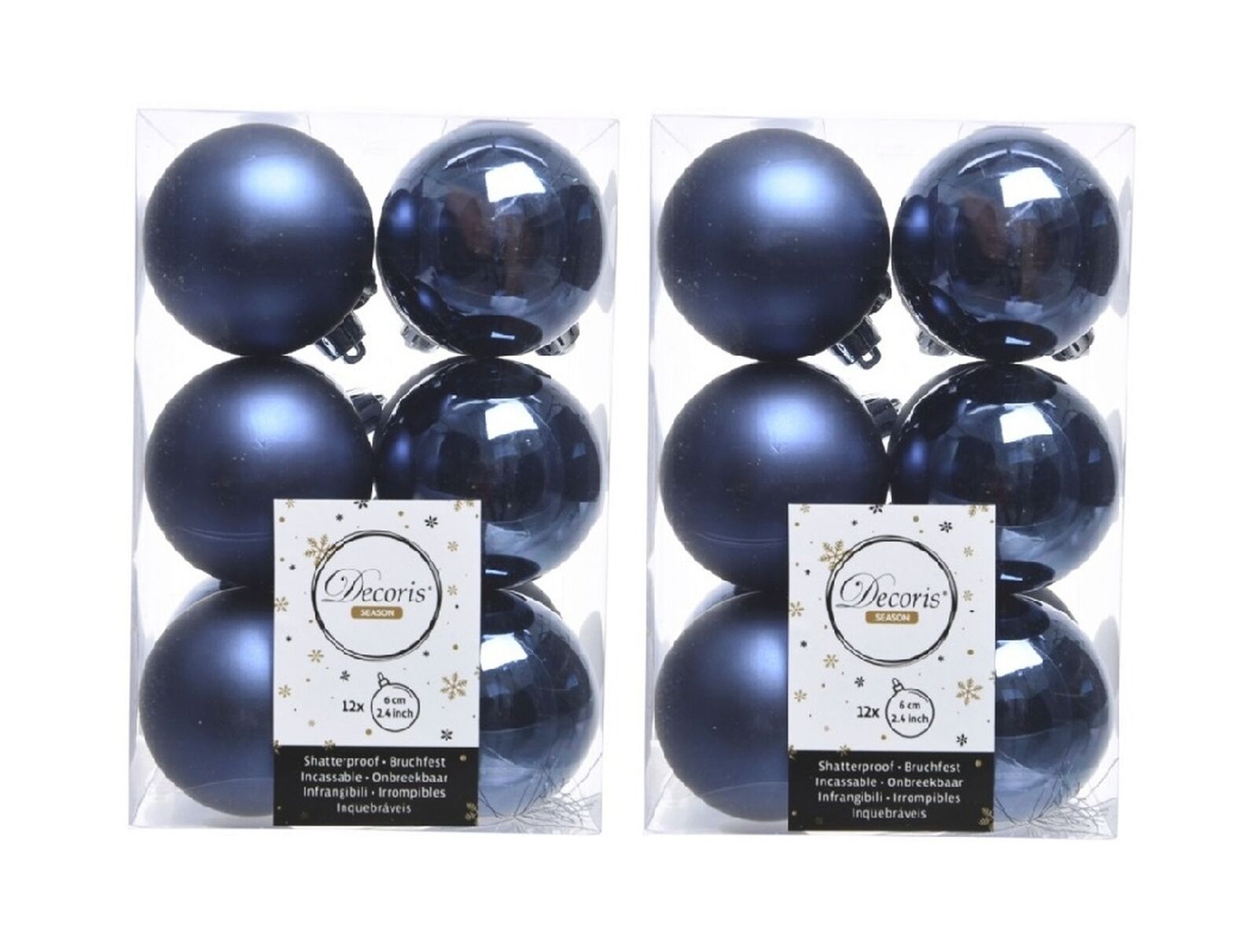 24 Midnight Blue Christmas Baubles Shatterproof Luxury Tree Decorations 6cm Blue