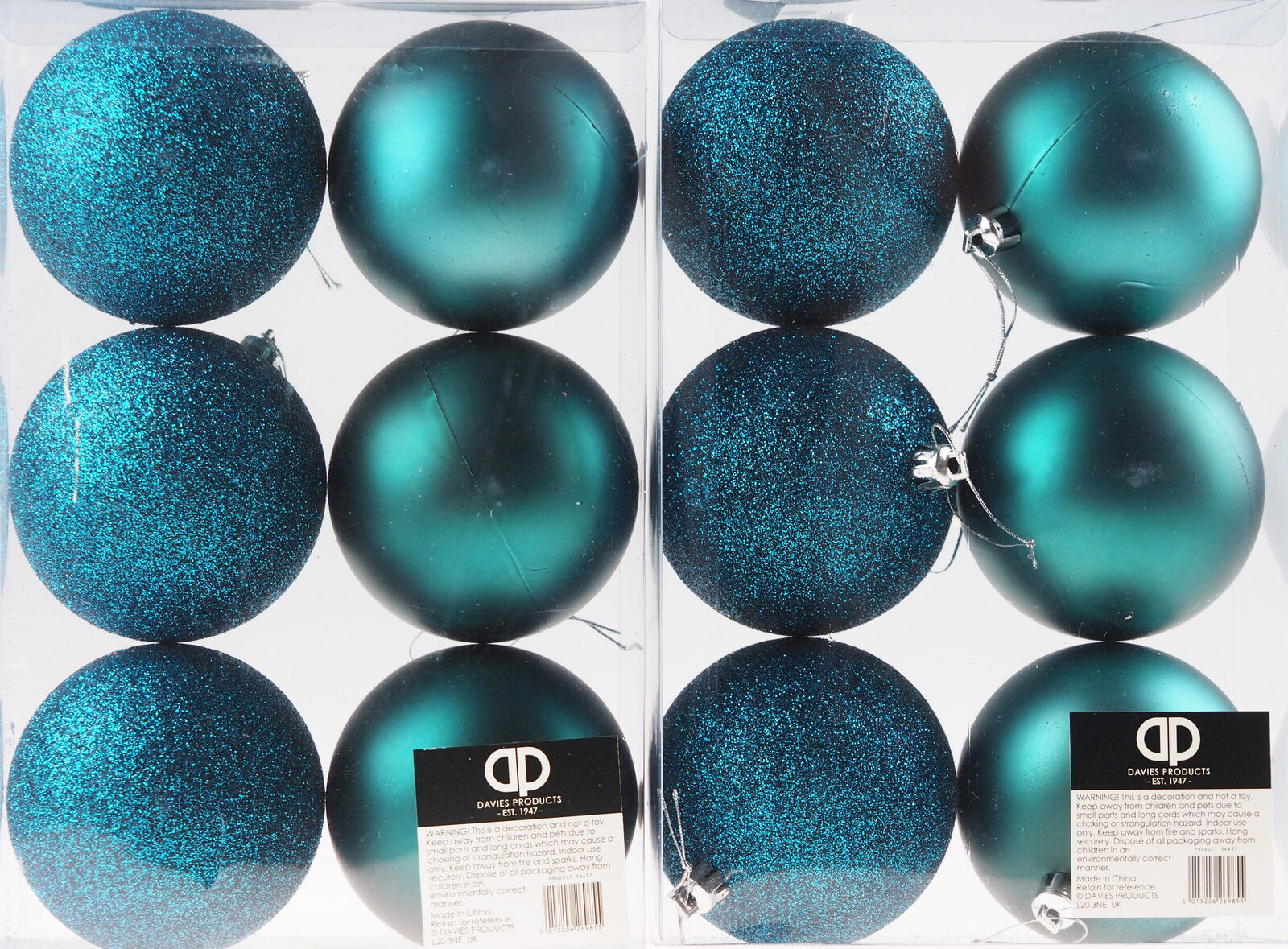 Teal Blue Christmas Baubles Kingfisher Hanging 8cm Tree Decorations - Set of 12