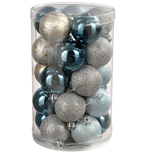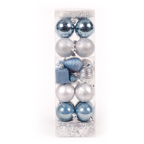 WeRChristmas 25 Pieces Deluxe Variety Christmas Tree Baubles Decoration Pack Blue & Silver