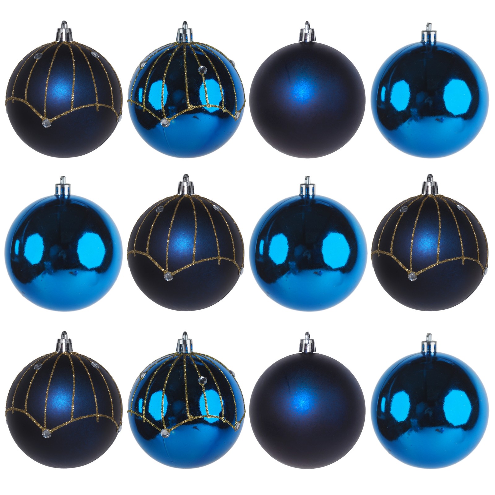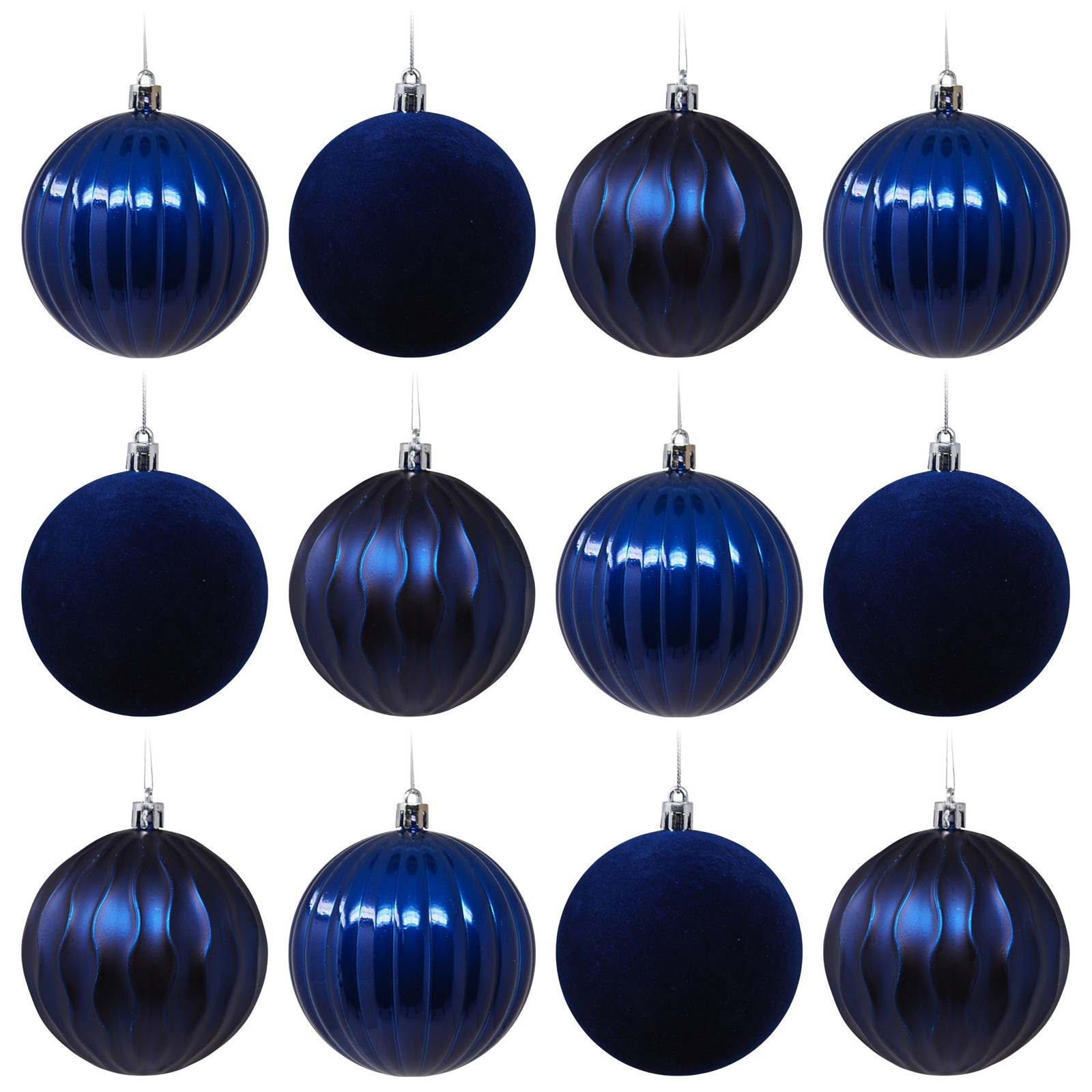 Midnight Blue Navy Christmas Tree Baubles Decorations (Set of 12)