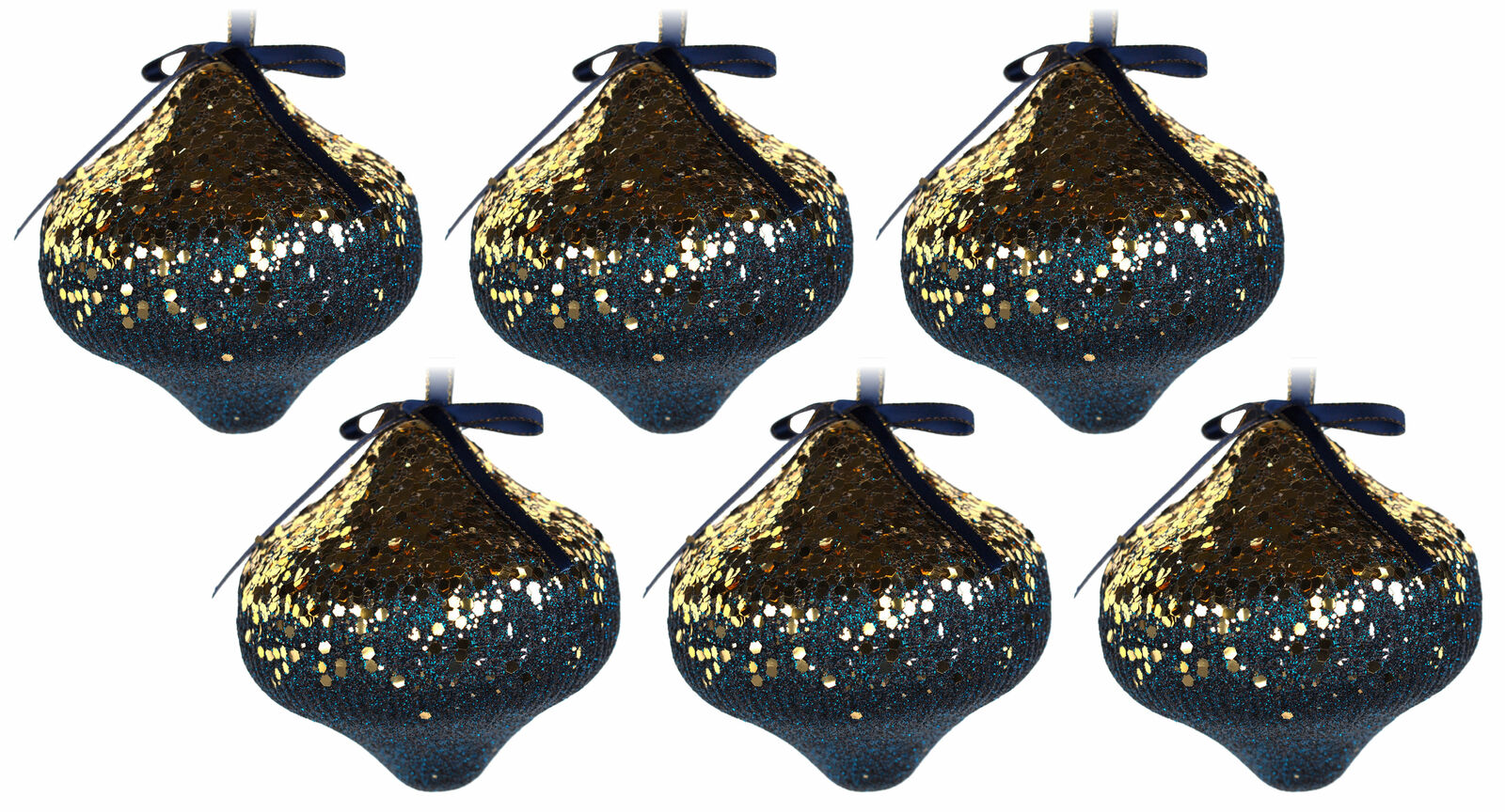 Sequin Navy Blue Gold Christmas Tree Baubles Decorations - Teardrop (Set of 6)