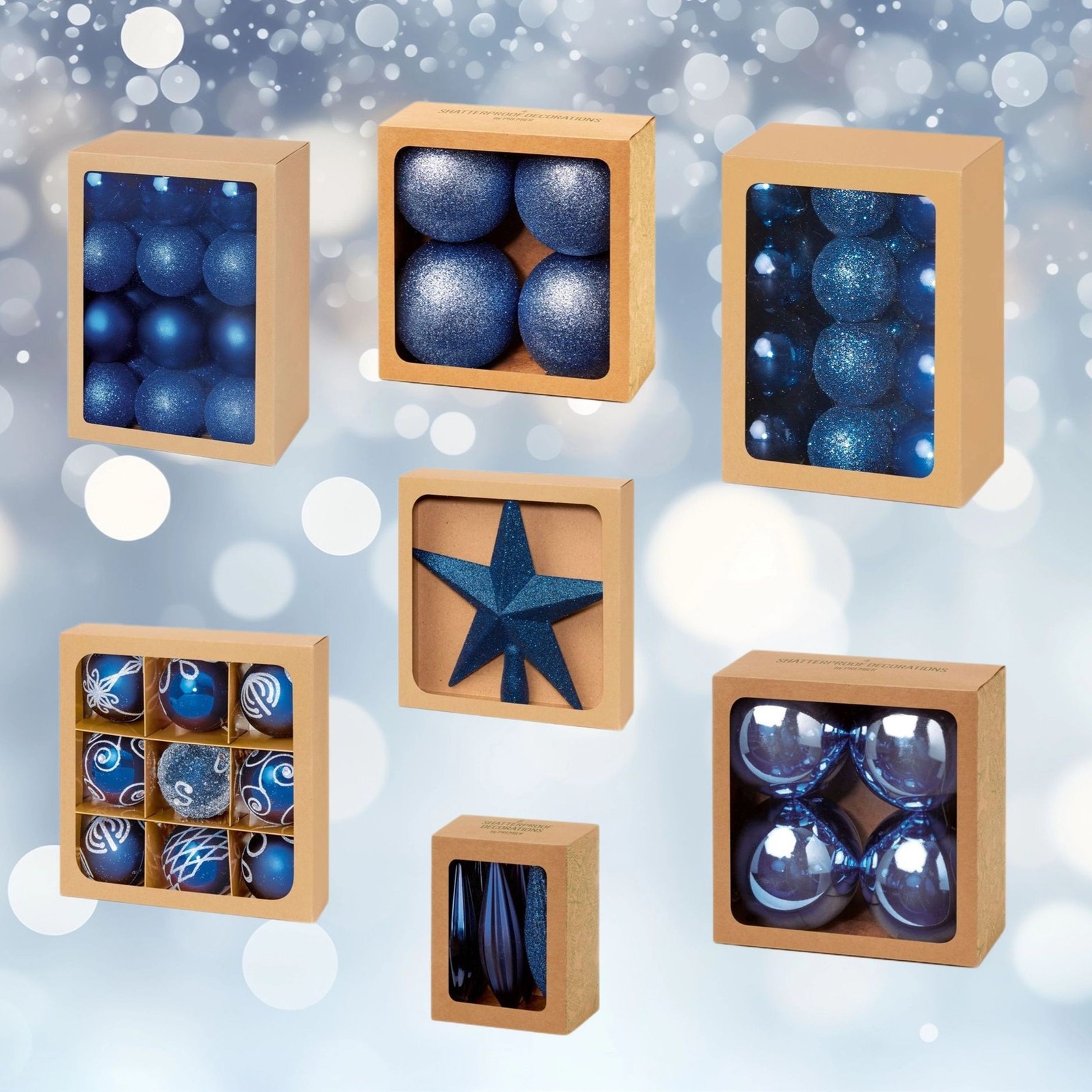 72 Piece Midnight Blue Christmas Tree Decorations Baubles Set With Tree Topper
