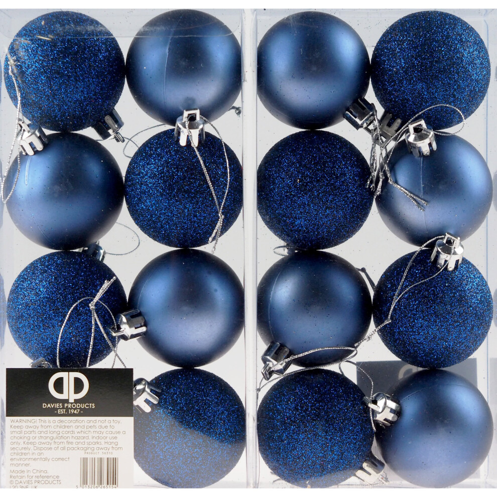 Set Of 16 Midnight Blue Christmas Tree Baubles Decorations - Glitter And Matt