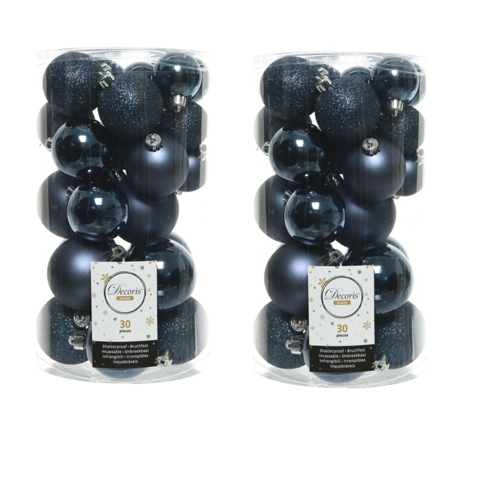 60 Midnight Blue Christmas Baubles Shatterproof Decor Glitter Shiny