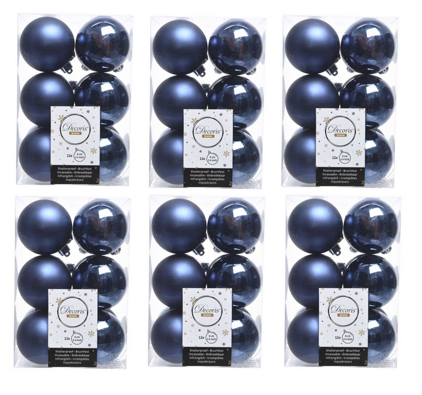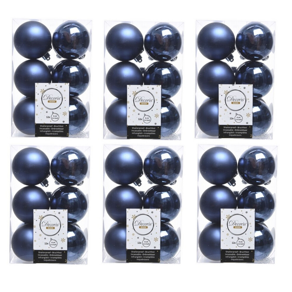 72 Midnight Blue Christmas Baubles Shatterproof Luxury Tree Decorations 6cm Blue
