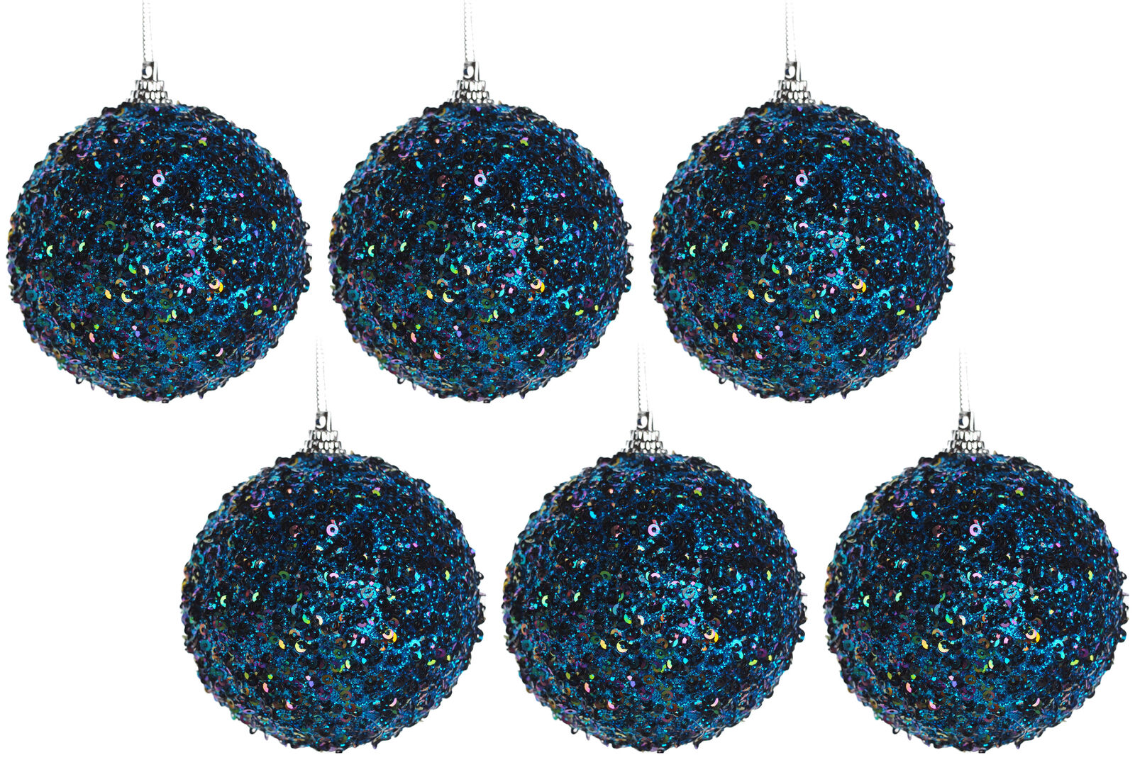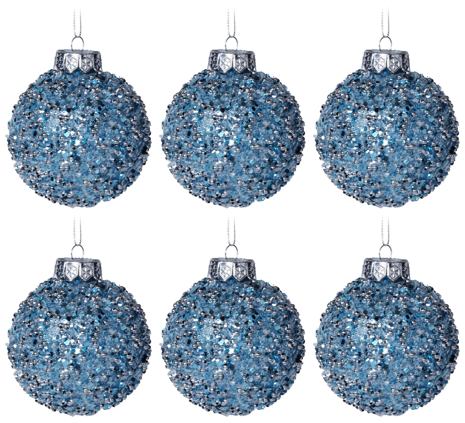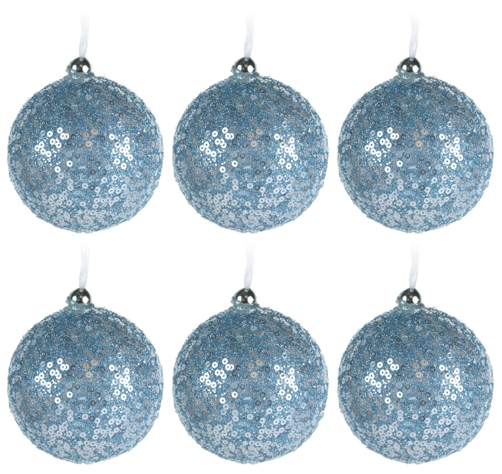 Sequin Encrusted Ice Blue Shimmer Christmas Tree Baubles Decorations - Set of 6