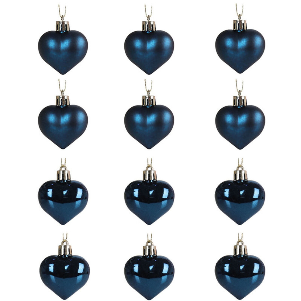 Dark Blue Heart-Shaped Christmas Baubles Set of 12, PVC, 1.97", for Tree, Valentineâs, Wedding â Compatible with Standard Hooks