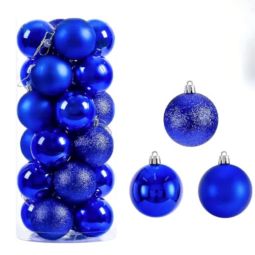 24 x 60 mm Midnight Blue Christmas Tree Baubles – Shatterproof Hanging Ornaments | Matt, Gloss & Glitter Decorations | Premium Shatter-Resistant Xmas Baubles for Indoor & Outdoor Trees