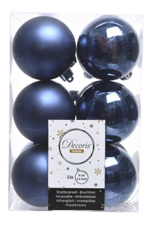 12 Midnight Blue Christmas Baubles Shatterproof Luxury Tree Decorations 6cm Blue