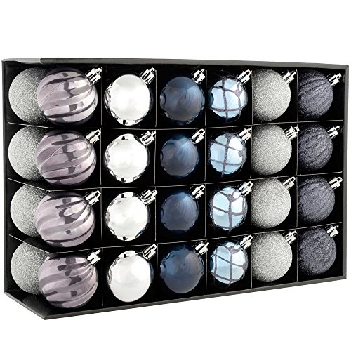 Valery Madelyn Christmas Baubles for Christmas Tree Decoration,49pcs 3cm Silver and Blue Shatterproof Ball Ornaments
