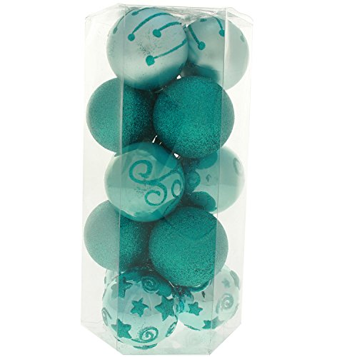 WeRChristmas 15-Piece Shatterproof Plastic Deluxe Baubles Christmas Tree Decoration Pack - Turquoise/Blue