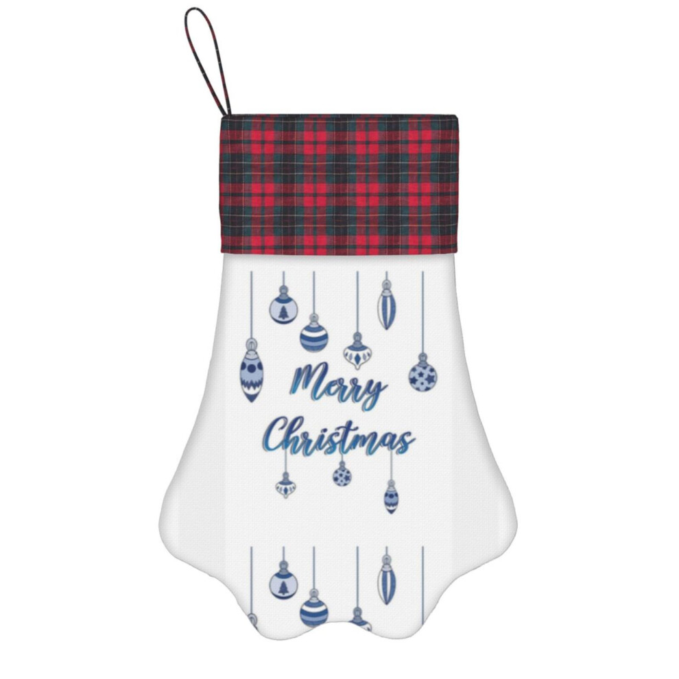 (Blue White Merry Christmas Baubles=5455) Paw Christmas Stockings Buffalo Tartan Plaid for Cats Dogs Pet Hanging Xmas Tree Decorations