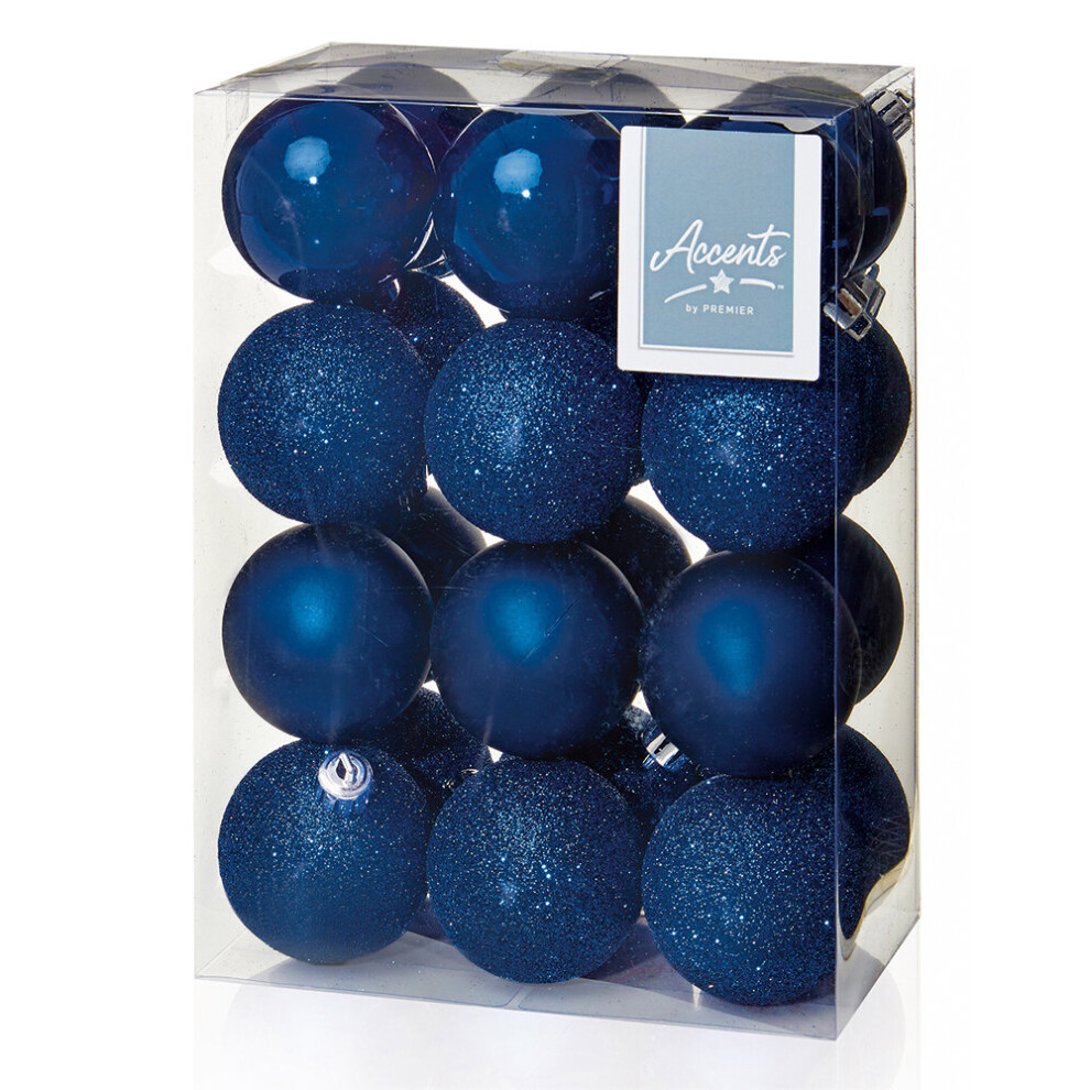 60mm Midnight Blue Christmas Baubles | 24 Assorted | Shatterproof Tree Decorations