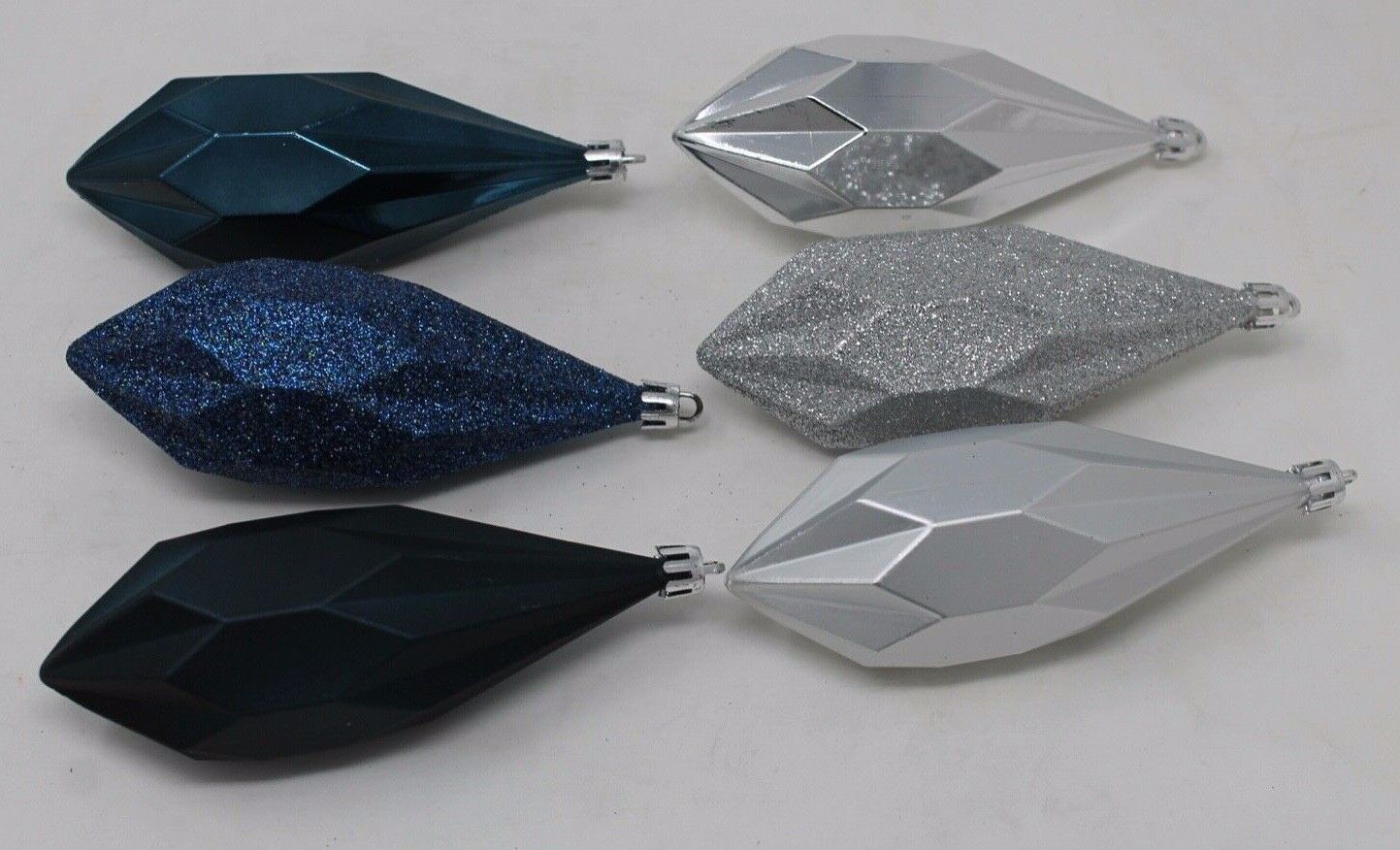 3 x Blue & 3 Silver Christmas Baubles Tree Hanging Decoration Ornament 14cm Tall