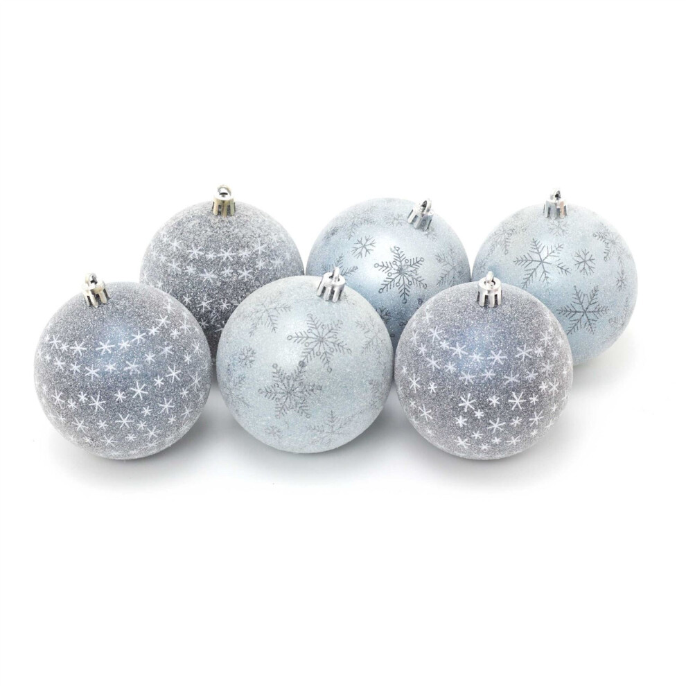 Ice Blue Christmas Baubles Tree Decorations - Opulent Winter Frost - Set of 6