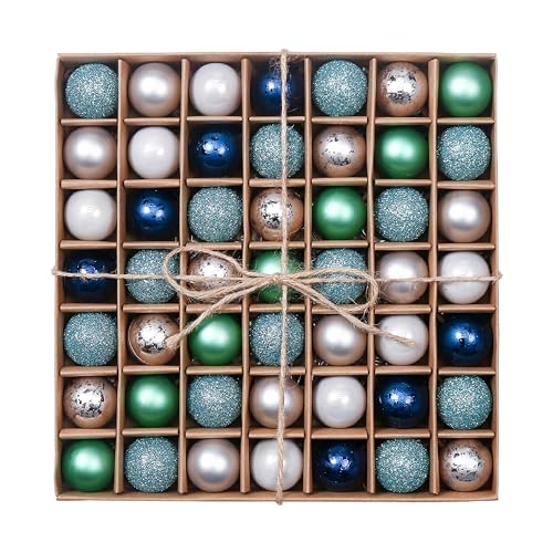 Valery Madelyn Christmas Baubles for Christmas Tree Decoration, 49 Pieces 3cm Artic Village and Silver Blue Shatterproof Ball Ornaments
