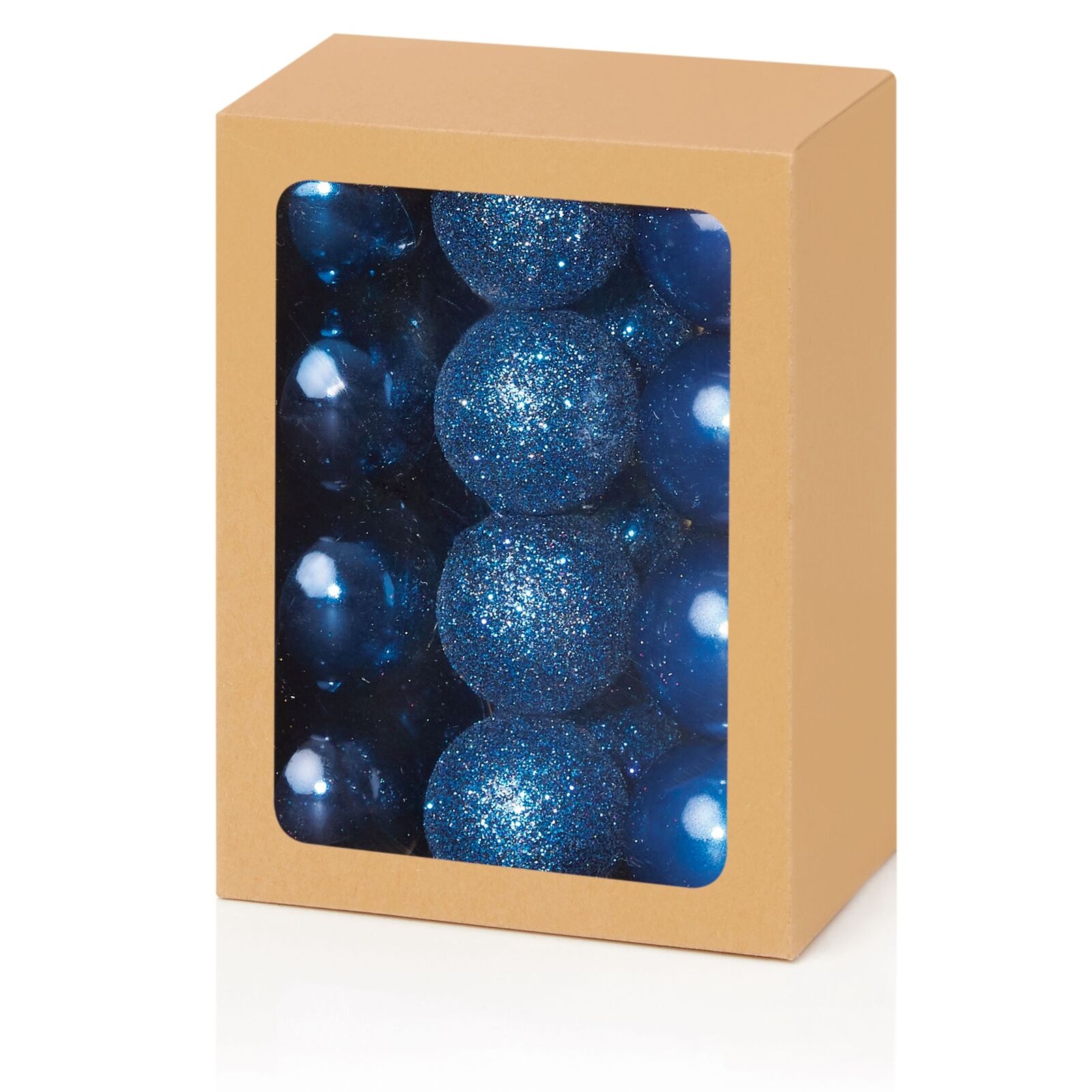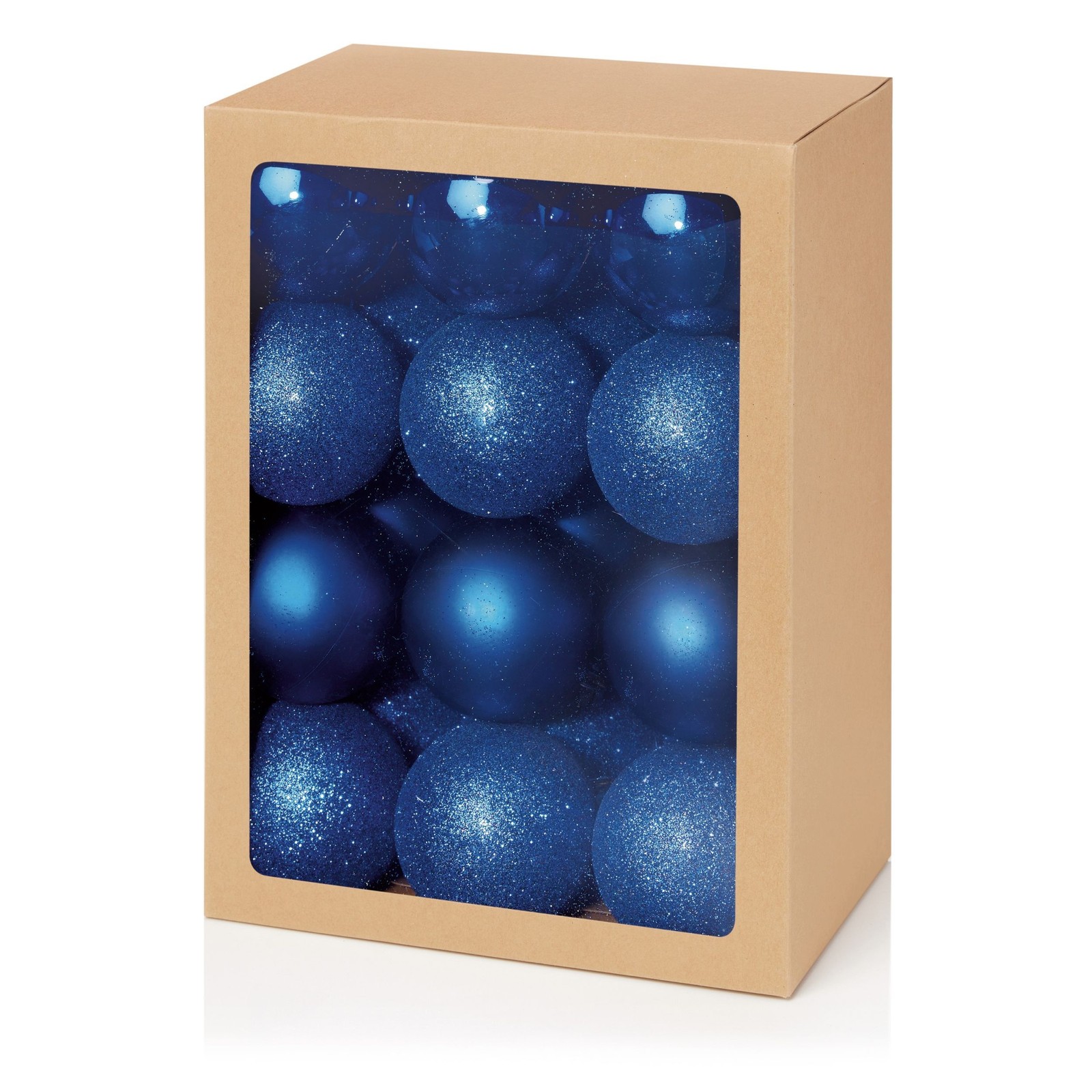 30 Midnight Blue Christmas Baubles Shatterproof Tree Decorations Glitter Shiny