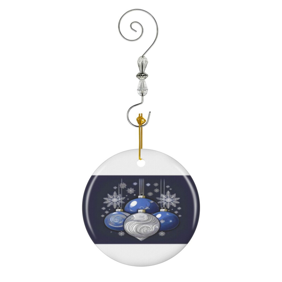 (Christmas Blue Lucky Baubles Christmas Blue Lucky Baubles_7792) Christmas Ornaments Ceramic with Crystal Hook Xmas Handmade Tree Decorations Keepsake