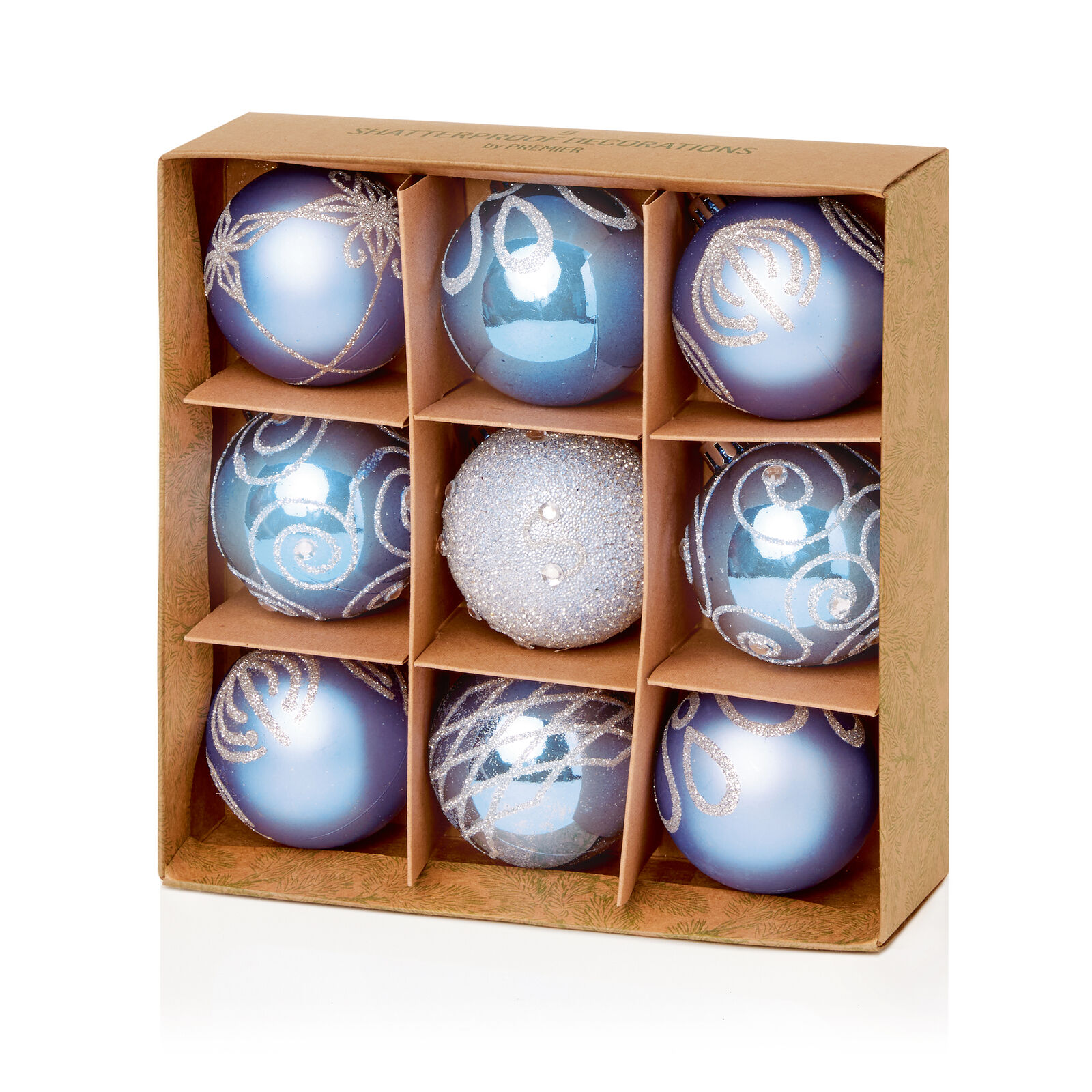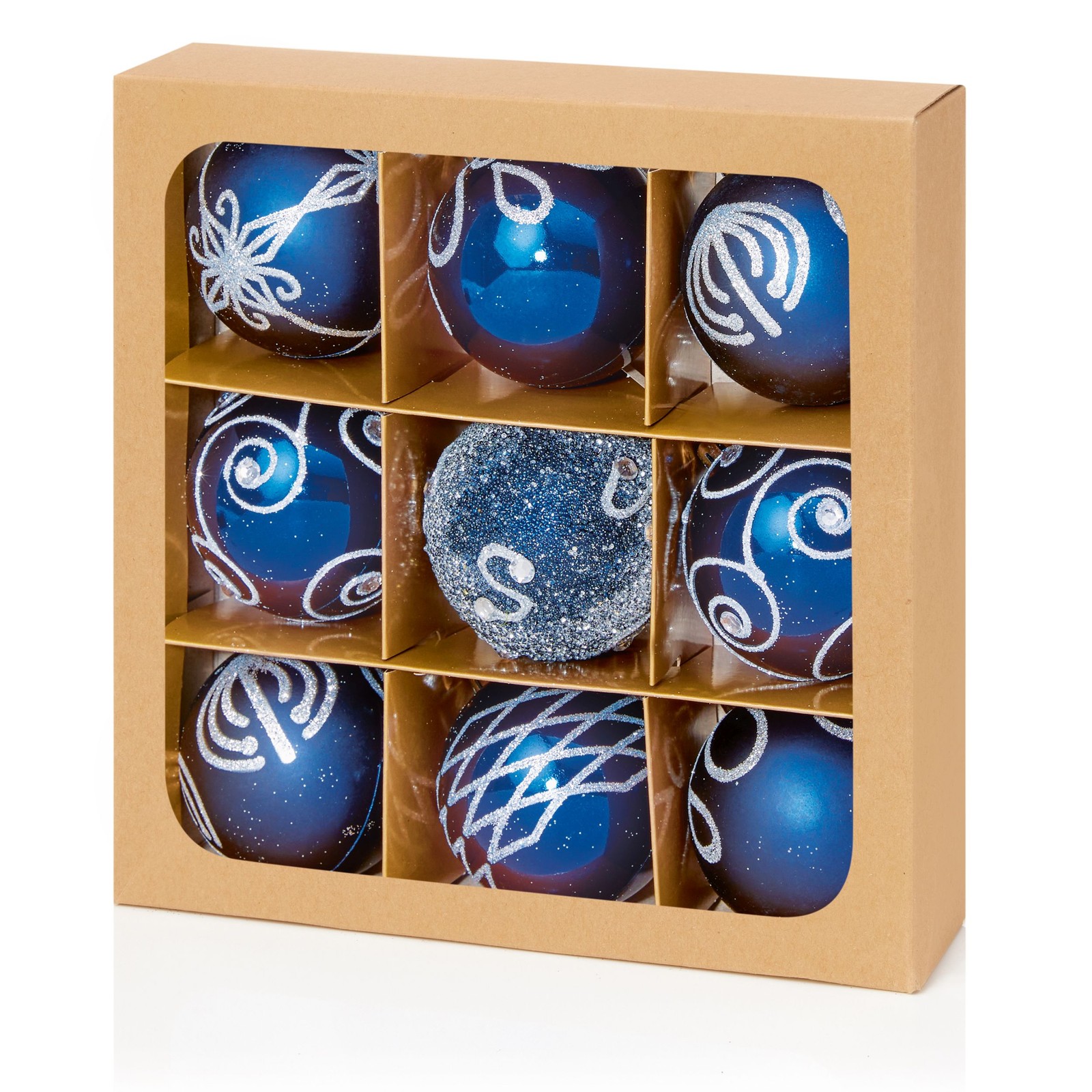 Mr Crimbo 9 Pack Shaker Christmas Tree Baubles Xmas Decorations 8cm - Deep Blue