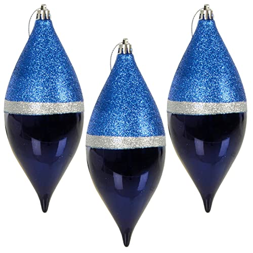 3 Pack Large Blue Navy Silver Christmas Tree Baubles Decoration - Teardrop 18cm