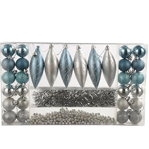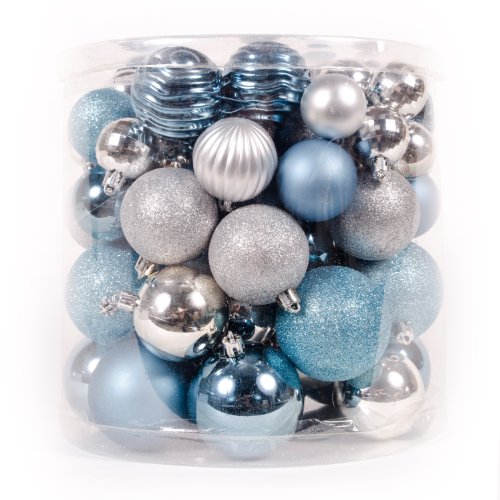 WeRChristmas 80 Pieces Deluxe Variety Christmas Tree Baubles Decoration Pack Blue & Silver