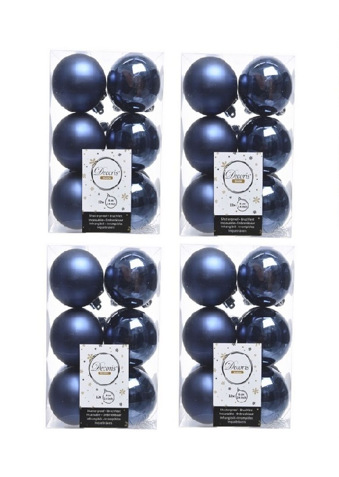 48 Midnight Blue Christmas Baubles Shatterproof Luxury Tree Decorations 6cm Blue
