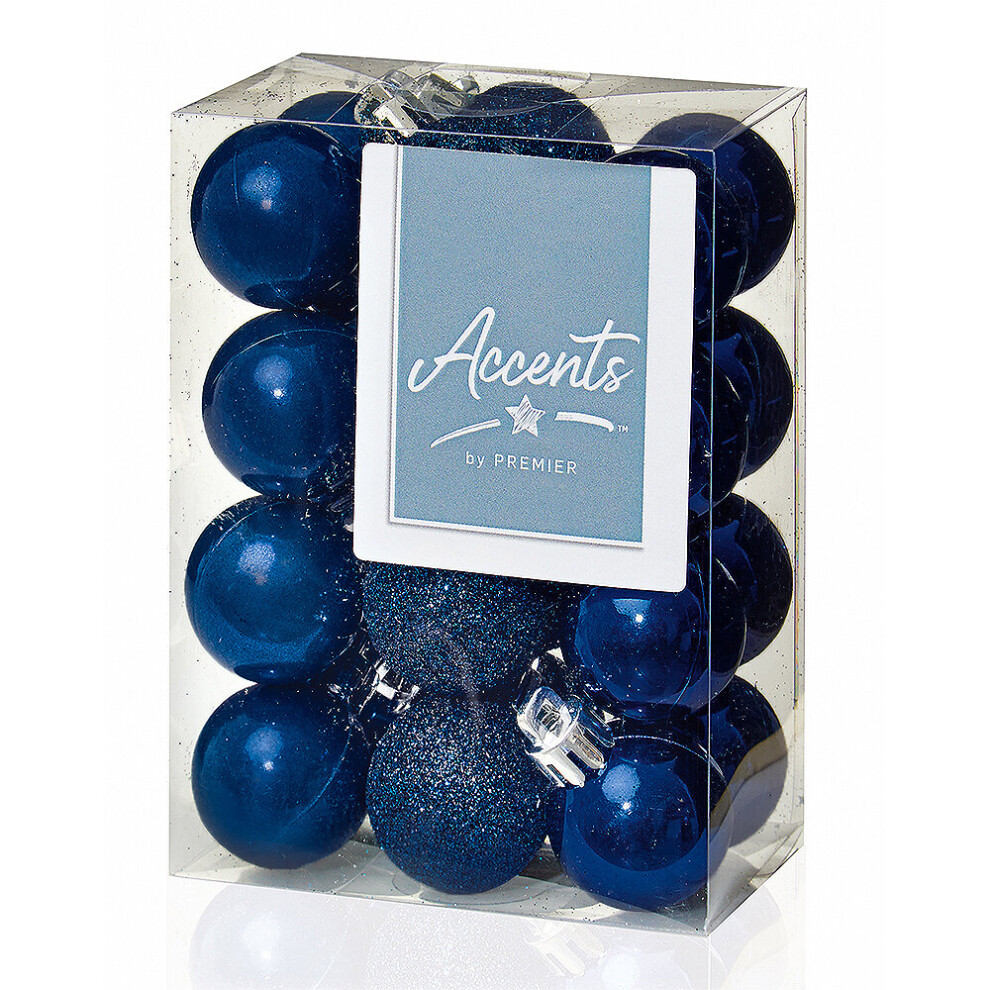 30mm Midnight Blue Christmas Baubles | 24 Assorted | Shatterproof Tree Decorations