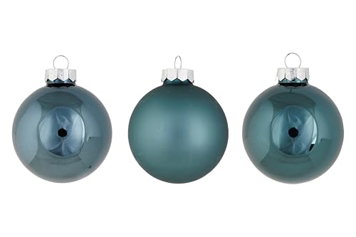 Cosy Home Set of 12 Shiny Matt Opal Blue Glass Christmas Baubles, D8 cm