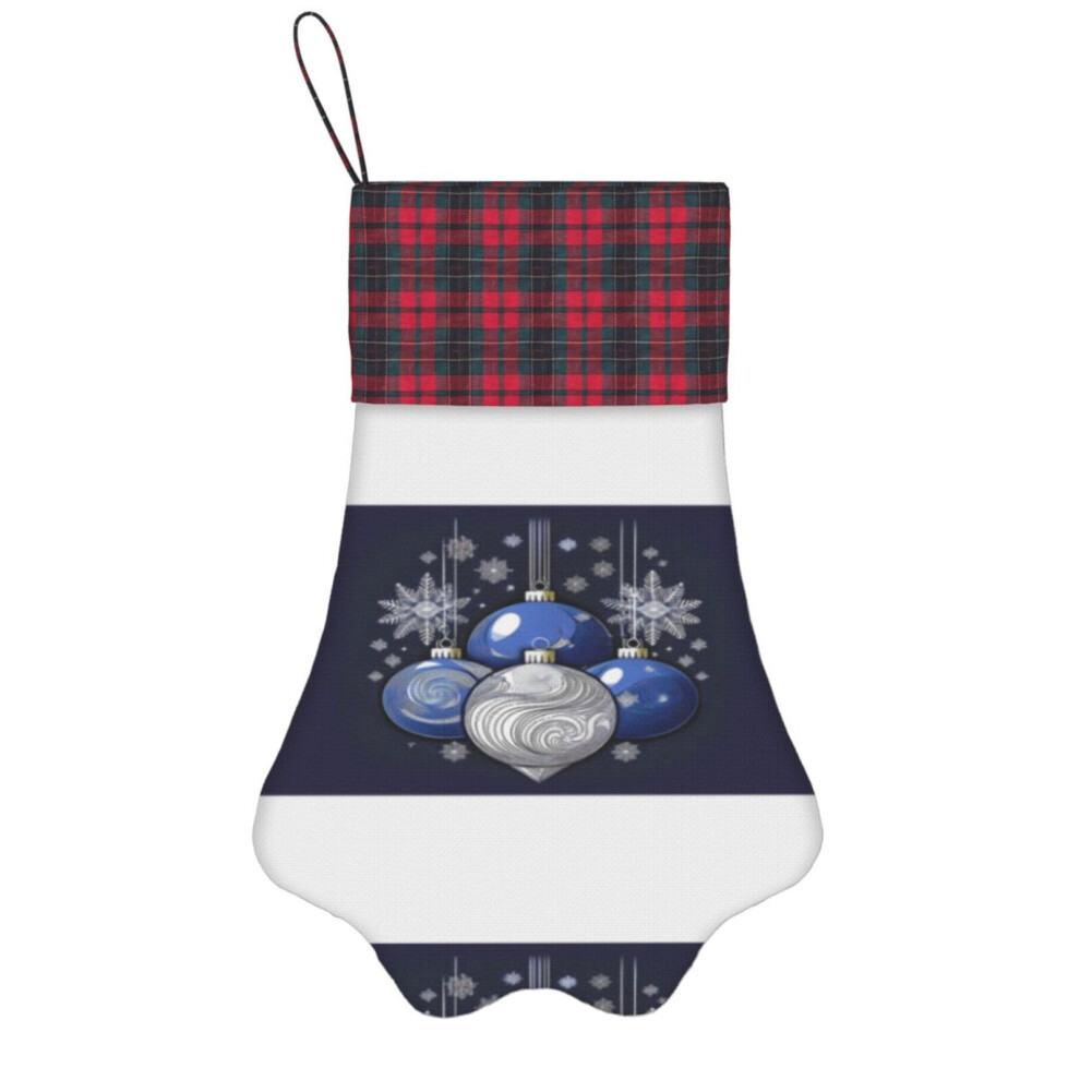 (Frosty Blue Christmas Baubles=7424) Paw Christmas Stockings Buffalo Tartan Plaid for Cats Dogs Pet Hanging Xmas Tree Decorations